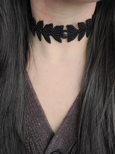 Macrame Leaf Choker with black agate