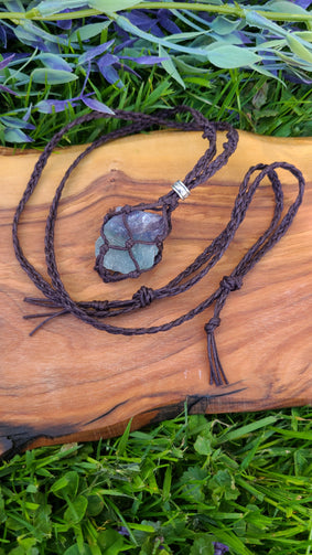 Handmade Macrame Wrapped Crystal Necklace with Fluorite