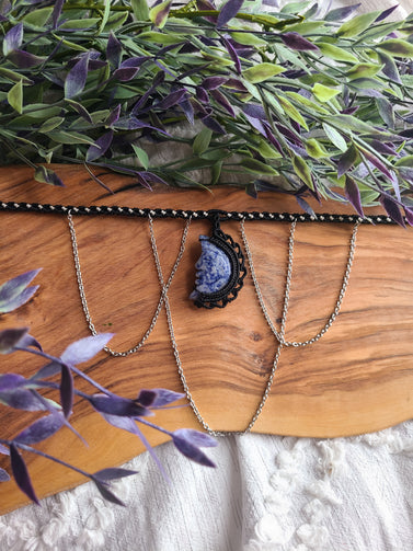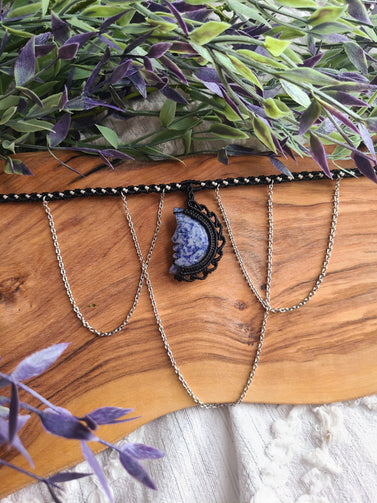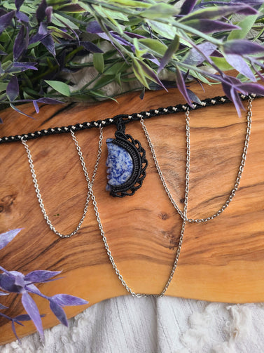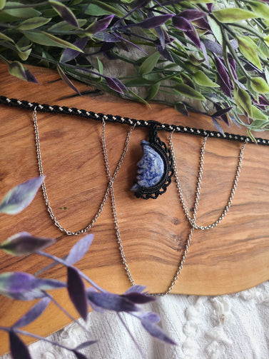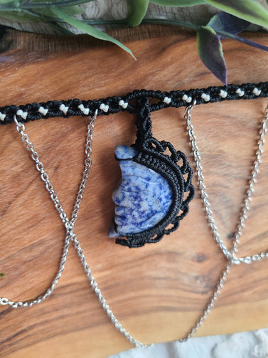 Moon Goddess Macrame Wrapped Crystal Choker- Sodalite Crystal
