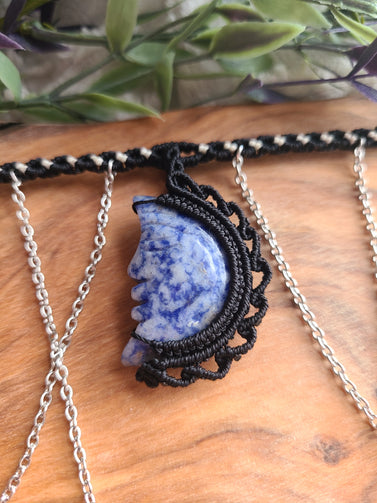 Handmade Beautiful Macrame Black and White Cord Wrapped Sodalite Moon Choker