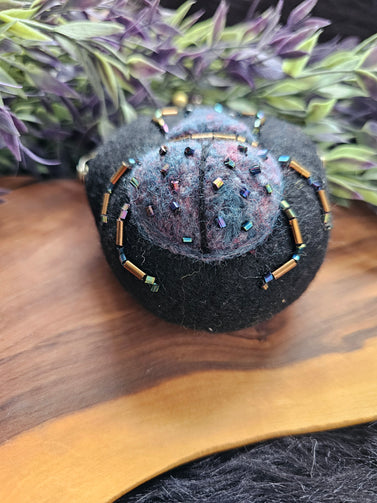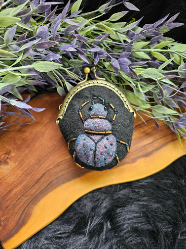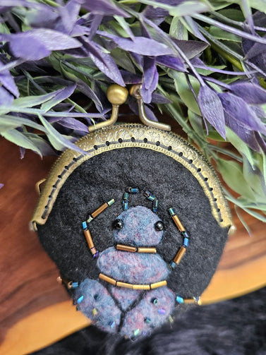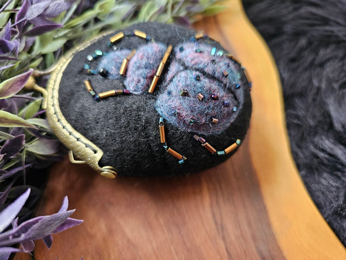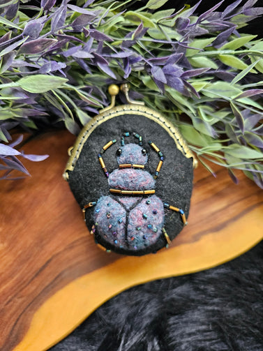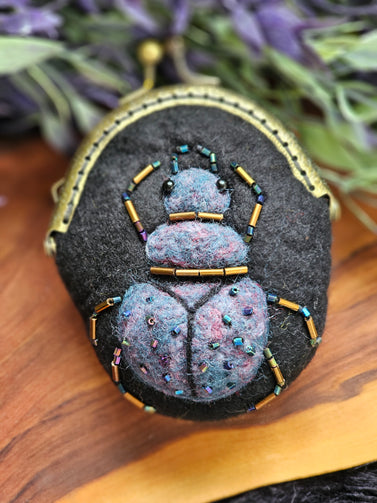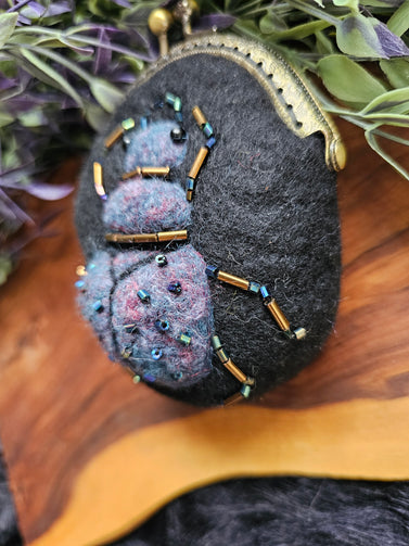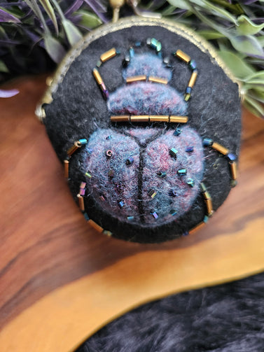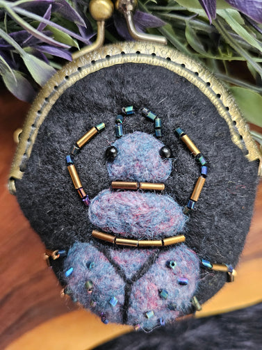 Indulge in the whimsical charm of our Needle Felt Beetle Small Coin Purse. Created through a delicate process of needle felting and wet felting, this coin purse is not only unique but is one of a kind. Perfect for storing your loose change, it adds a touch of fun to your everyday essentials.