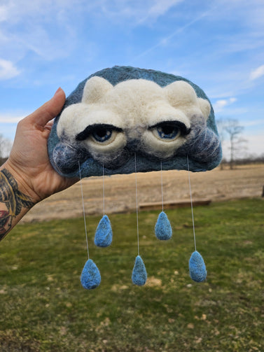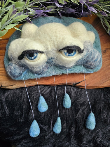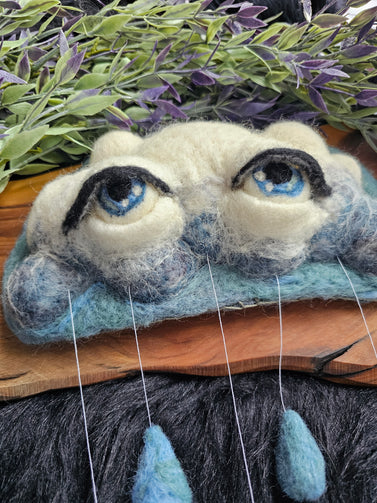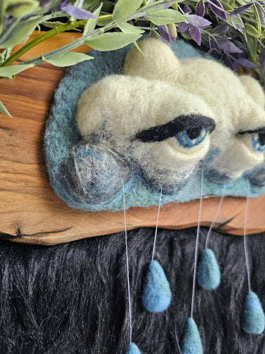 Transform your home into a whimsical wonderland with our Needle Felt Sad Cloud Wall Art. Made from high-quality wool, this unique decor piece is more than just a sculpture - it's a playful expression of emotion. This is a one-of-a-kind fiber art creation that can be hung on your wall or in a window.